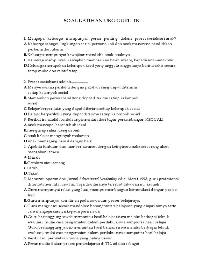 50 Soal Ukg Paud Dan Kunci Jawaban Penulis Cilik